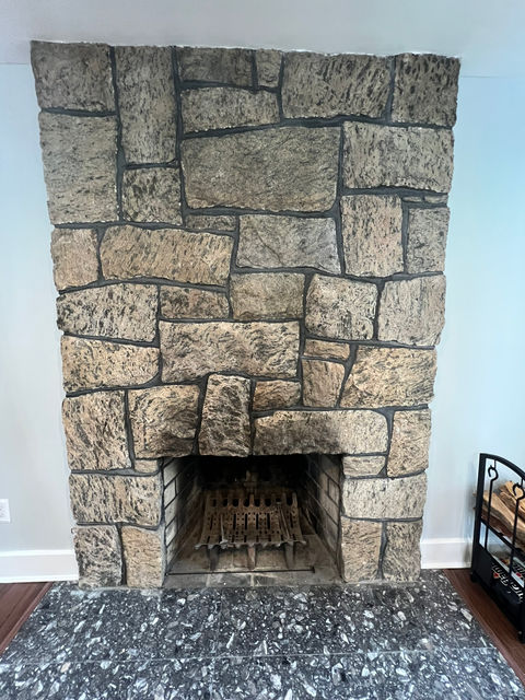 Enjoy this transformation of this fireplace that was painted with a "greige" color scheme with our original faux painting technique.